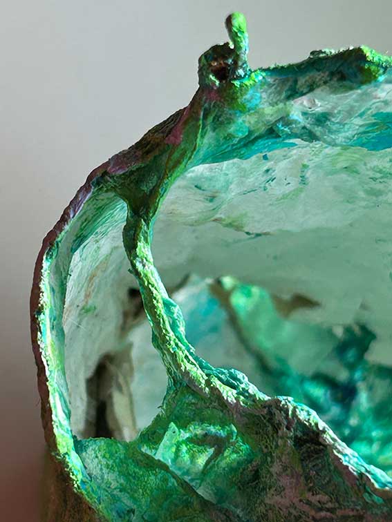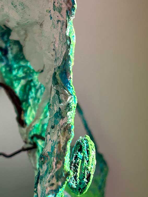 | Technik | Acrylfarbe auf in Reinacrylat-Dispersion getränktem Zellstoff auf Acrylfarbe auf Pappmaché / Draht | |