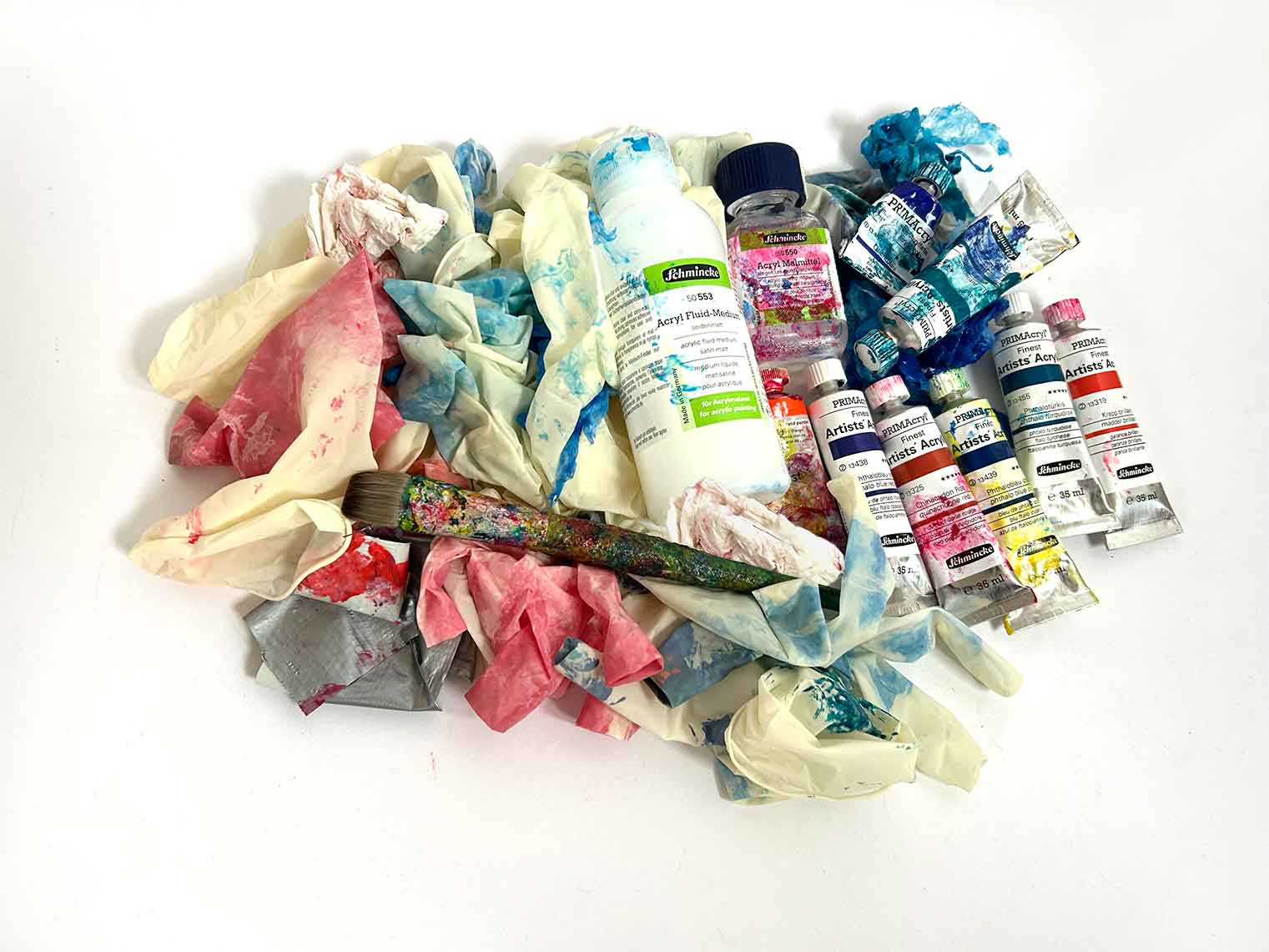 Technik | Reinacrylat-Dispersion und Acrylfarbe in Zellstoff, Acrylfarbe / Draht | |