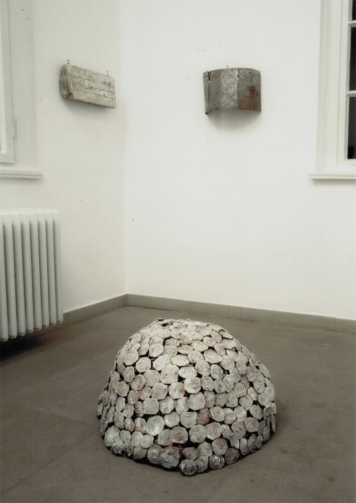 Technik | Acrylfarbe auf Hartfaserplättchen / Draht | |