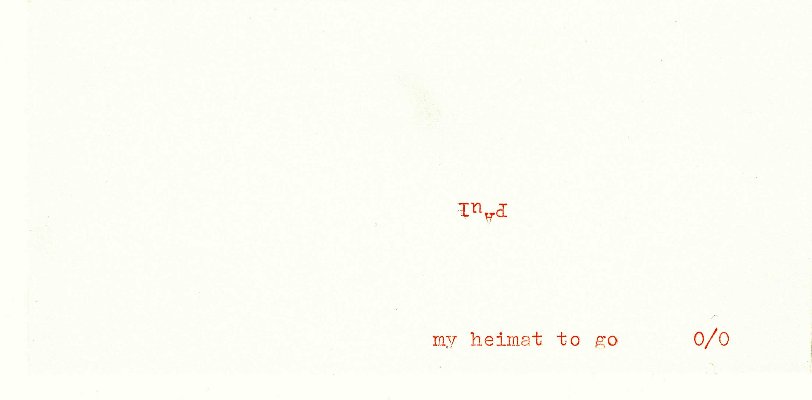 Text (getippt (rotes Schreibmaschinenfarbband) mit mechanischer Büroschreibmaschine Triumph - Matura, Modell ca. von 1951) auf leicht gelblichem, dünnem Karton