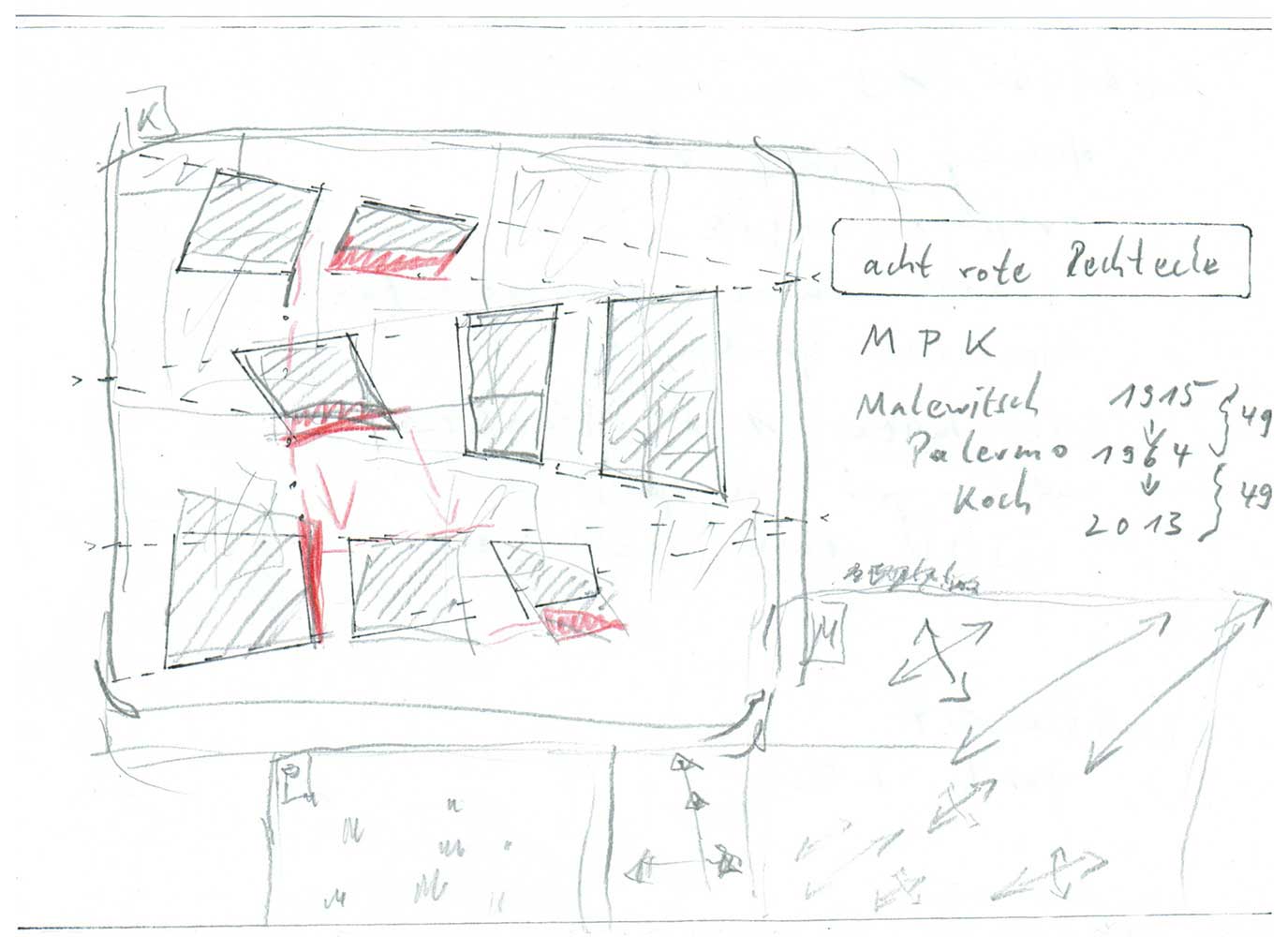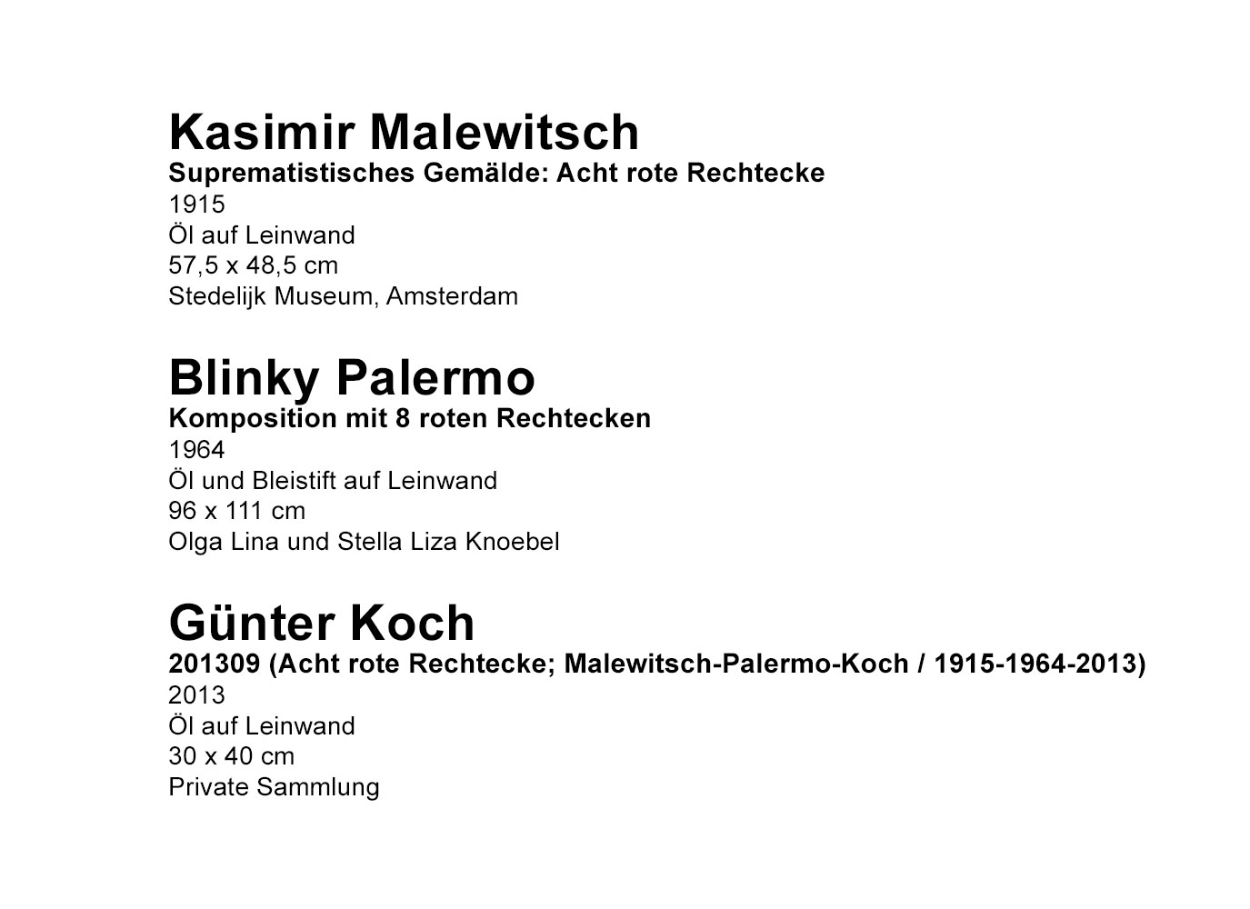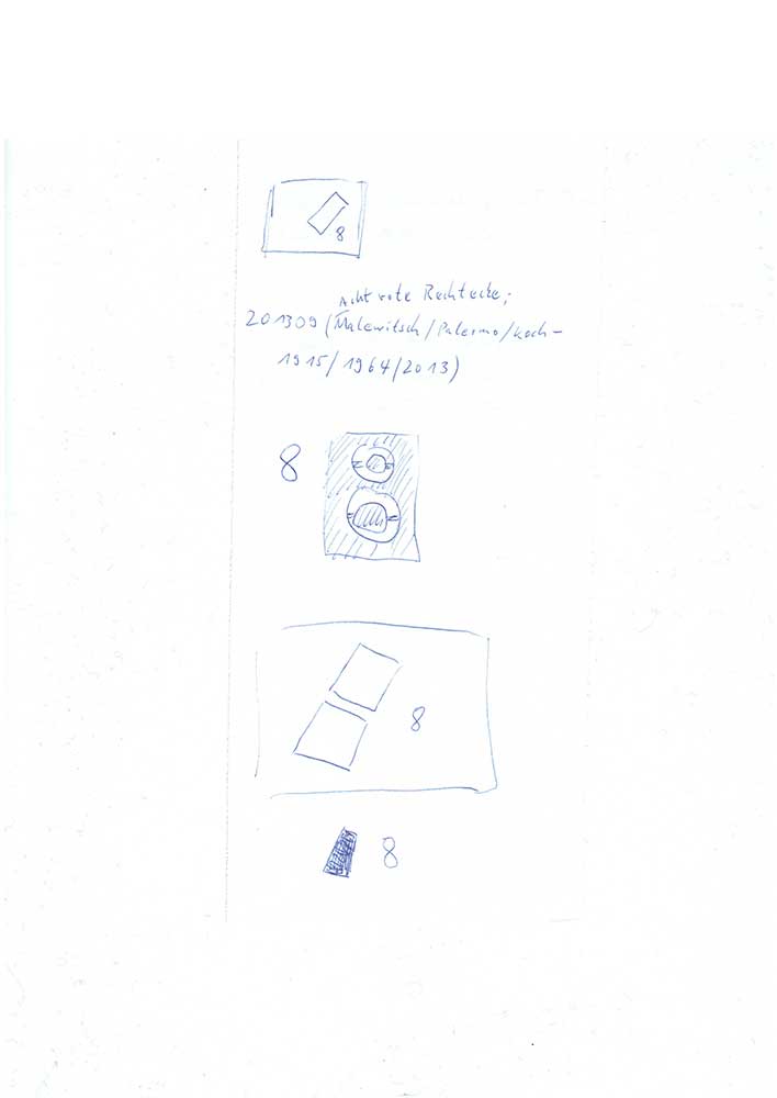Titel | 201309 (Acht rote Rechtecke; Malewitsch-Palermo-Koch / 1915-1964-2013) | |