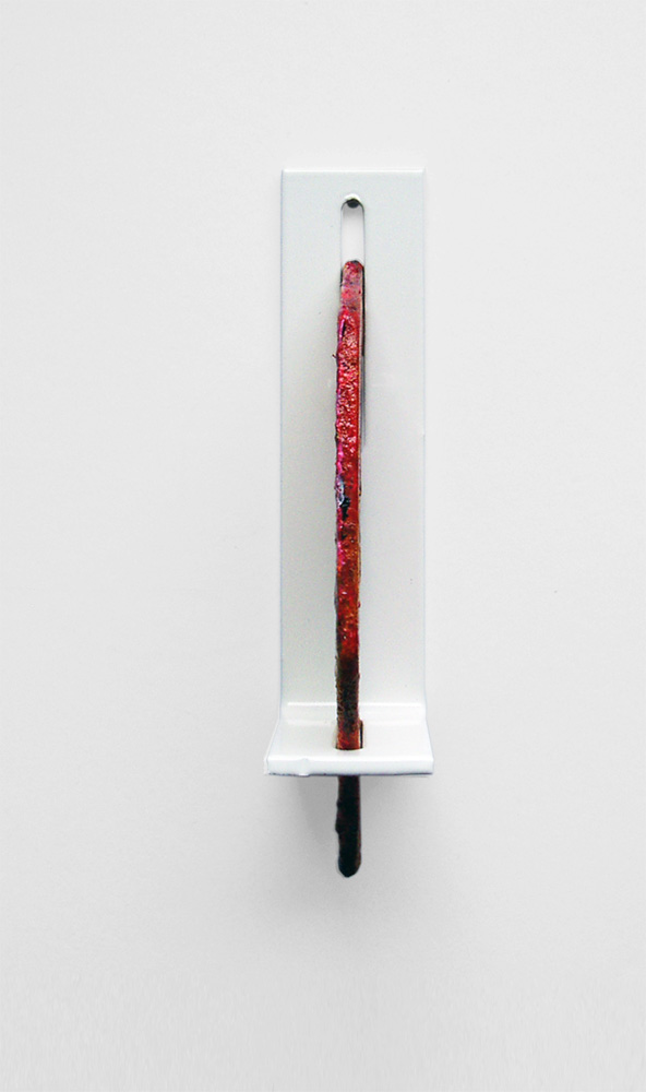 Technik | | Acrylfarbe auf Hartfaserplatte / Winkeleisen weiß lackiert |