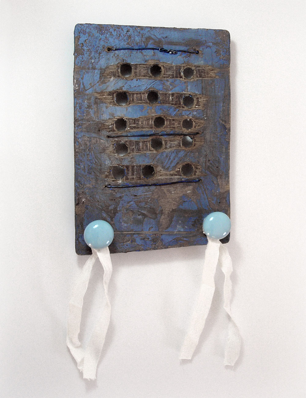 Technik | Acrylfarbe auf Sperrholz / Schubladenknöpfe / Leinenbänder / Draht / Schrauben | |