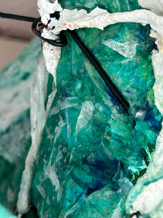 | Technik | Acrylfarbe auf in Reinacrylat-Dispersion getränktem Zellstoff auf Acrylfarbe auf Pappmaché / Draht | |