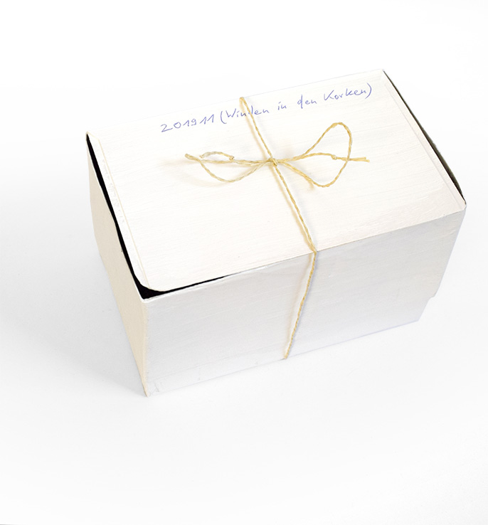 Signatur (rs=Rückseite; vs=Vorderseite) | Günter Koch 201911 (Winden in den Korken) (rs) | |