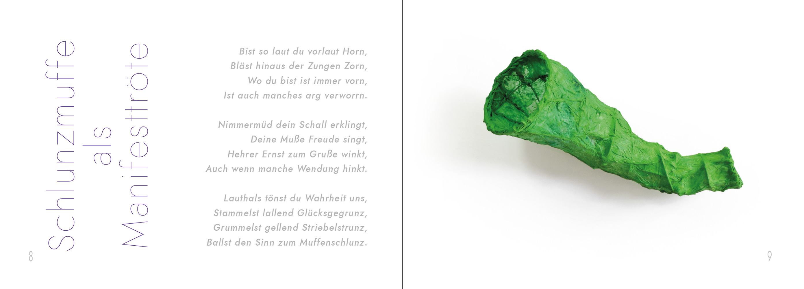 ![]() ![]() Schlunzmuffe als Manifesttröte Bist so laut du vorlaut Horn, Bläst hinaus der Zungen Zorn, Wo du bist ist immer vorn, Ist auch manches arg verworrn. Nimmermüd dein Schall erklingt, Deine Muße Freude singt, Hehrer Ernst zum Gruße winkt, Auch wenn manche Wendung hinkt. Lauthals tönst du Wahrheit uns, Stammelst lallend Glücksgegrunz, Grummelst gellend Striebelstrunz, Ballst den Sinn zum Muffenschlunz. [ Manifesttröte - 2019 ] |