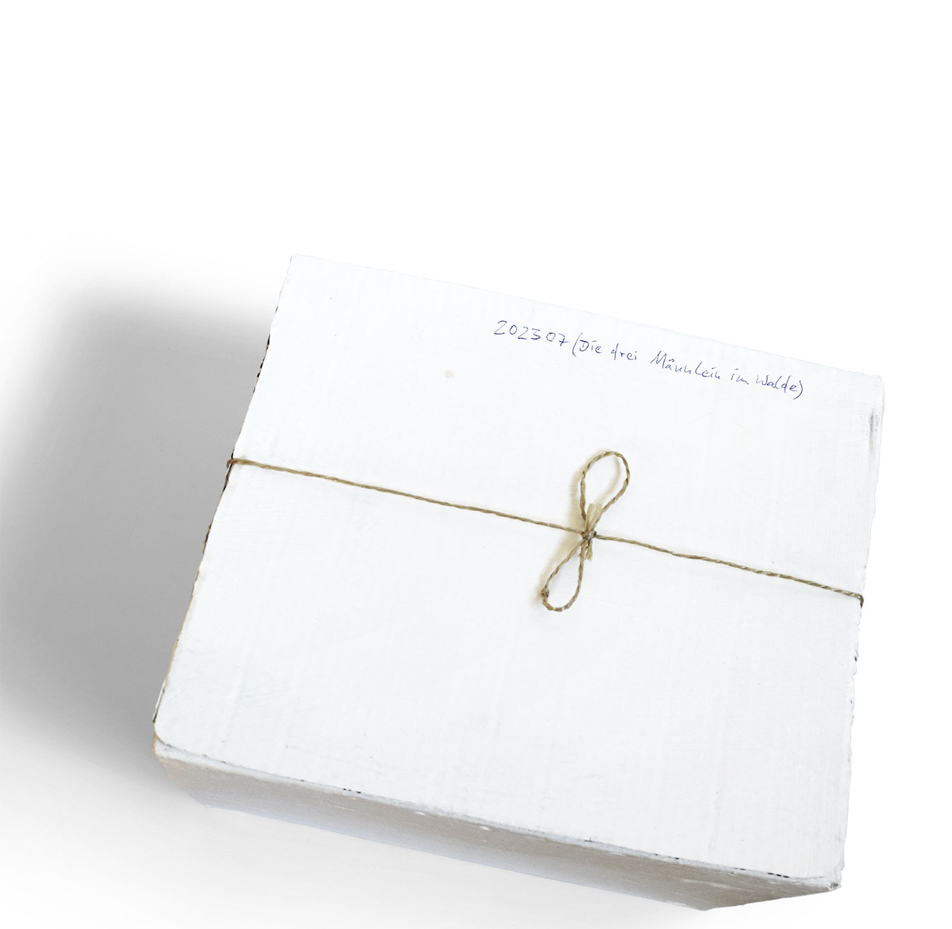 Bemerkung | Aufbewahrung in Pappschachtel (27,5 x 31,5 x 20,5 cm) Externer Link zu Wikipedia 'Die drei Männlein im Walde' https://de.wikipedia.org/wiki/Die_drei_Männlein_im_Walde - abgerufen am 23.04.2023 |