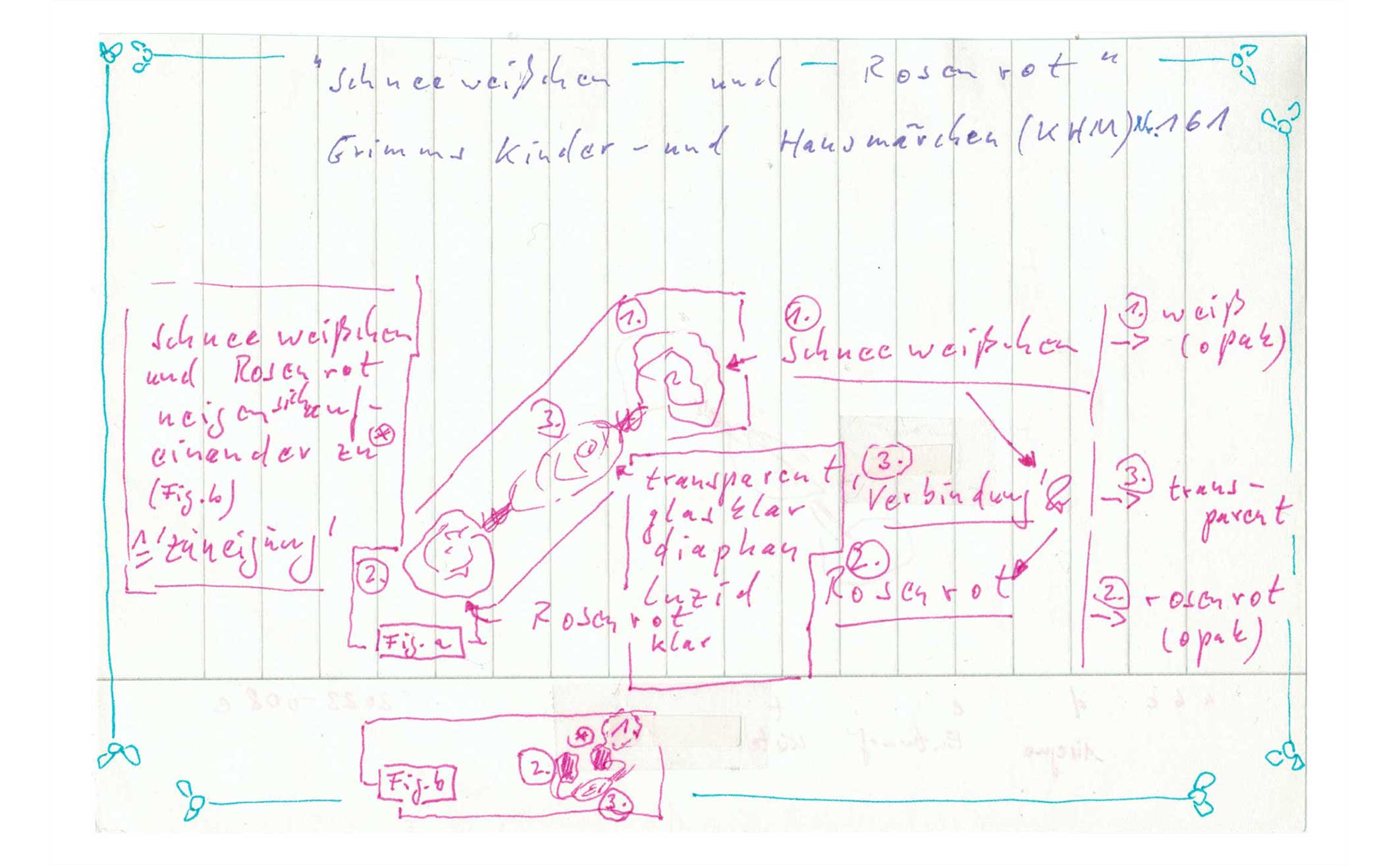 Bemerkung | Aufbewahrung in Pappschachtel (21,5 x 30 x 26,5 cm) Externer Link zu Wikipedia 'Schneeweißchen und Rosenrot' https://de.wikipedia.org/wiki/Schneeweißchen_und_Rosenrot - abgerufen am 23.04.2023 |
