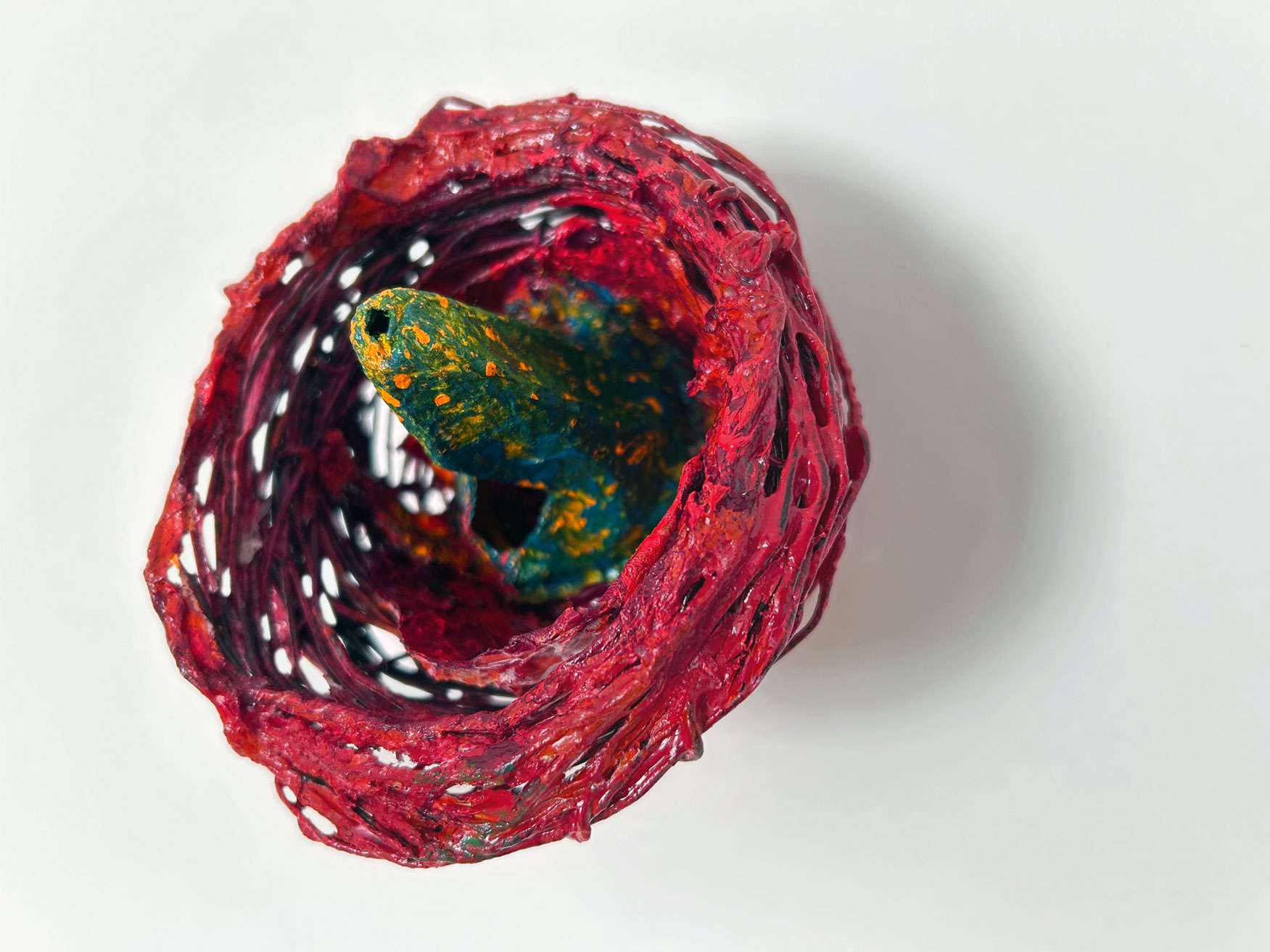 Technik | Reinacrylat-Dispersion und Acrylfarbe in Zellstoff, Acrylfarbe, Acrylfarbe auf Pappmaché / Draht | |