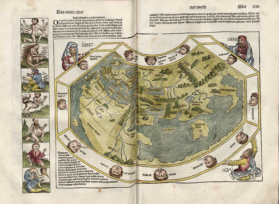 Das ander alter / der werlt Blat XIII: Auftaylung der werlt in gemain: Die werlt wirdt darumb ein umbkrais genat dz sie simbel rotund gescheybelt