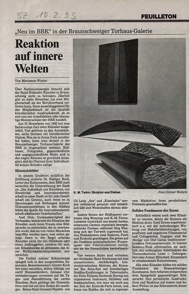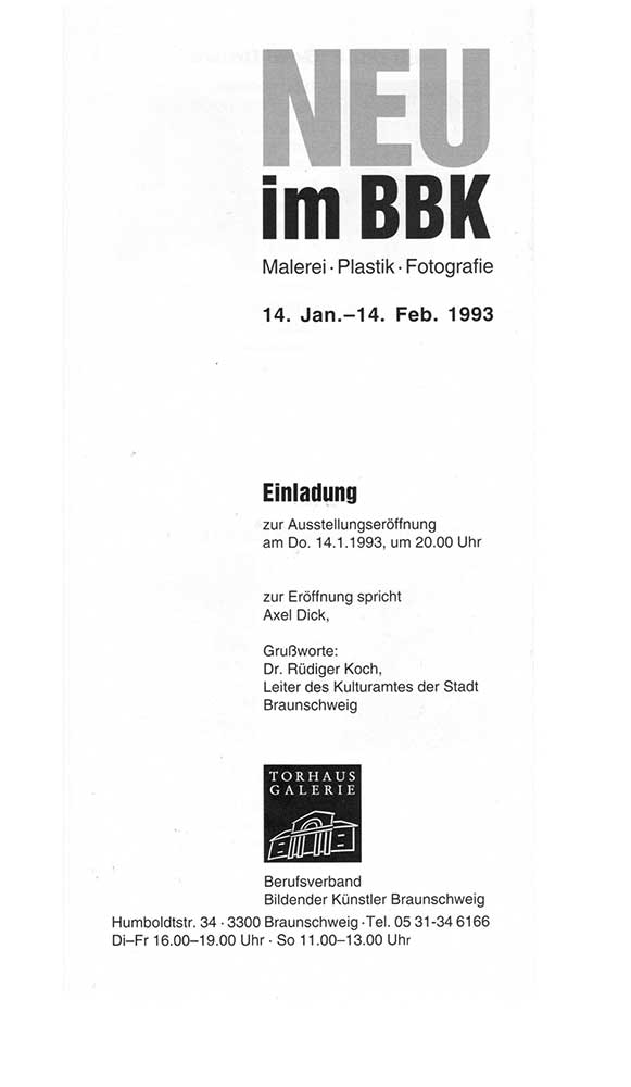 Ausstellung - 1993 - Neu im BBK Braunschweig, BBK Torhaus-Galerie Braunschweig, 14.01.-14.02.1993